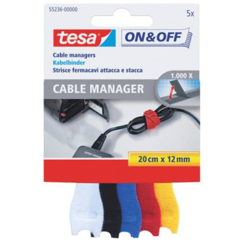 NASTRO FERMACAVI TESA ON & OFF 12 MM X 20 CM COLORI MISTI CONF. DA 5 - 55236-00000-01