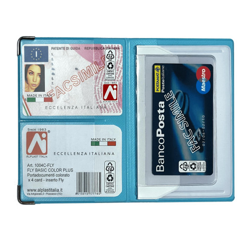 - Caratteristiche: inserimento fly porta banconote e 2 card estraibile, scomparti per 2 documenti formato card e inserto in pvc antistatico porta carte di credito per 2 carte