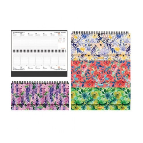 Agenda planning settimanale da tavolo con eleganti fantasie floreali assortite, perfetta per organizzare gli impegni quotidiani con praticità e stile.