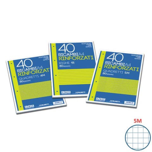 RICAMBI RINFORZATI BLASETTI IN CARTA BIANCA PER USO A MANO CON 4 FORI RINFORZATI IN PLASTICA 80 G/M² FORMATO A4 CONF. DA 40