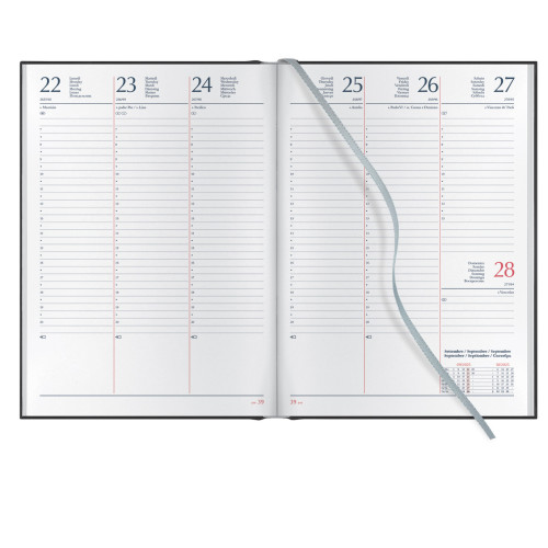 Agenda settimanale Dynamic Dimensione: 17x24 128 pagine compresa rubrica stampata, 6 lingue: I-GB-F.. Continua