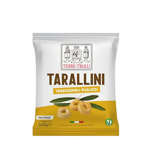 I tarallini tradizionali pugliesi sono un gustoso snack tipico della regione, realizzati con ingredienti di alta qualità secondo ricette tradizionali. Perfetti da gustare in qualsiasi momento della giornata, le bustine monoporzione da 35 grammi li rendono comodi da portare con sé ovunque.
